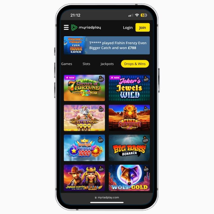 - Drops & Wins: MyriadPlay takes part in Pragmatic Play’s popular Drops & Wins scheme, which offers £2 million every month in cash drops and tournament prizes.